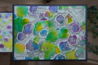 激しいスピードで進化する情報社会に恐れを抱きながら、絵画をその間(はざま)に浮かべる。この問題にスポットを当てながら、絵画の本質である交換の役割を、布素材の特性を生かし、重ね、透かし、両面を感じながら、追求してゆく。