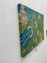 畔蒜克則展ABIRU Katunori2024.5.10(fri) - 5.24(fri) ギャラリーなつか 日曜休廊「あっぱれの持つ秘密」 日本画、木製パネル、雲肌麻紙、膠、水干絵具、岩絵具 335×445mm 2023 「あの島へ行く」 日本画、木製パネル、雲肌麻紙、膠、箔、水干絵具、岩絵具 500×380mm 2020 近年、夏が暑すぎて自分の好きなあの頃の夏とは違ってきている。 しかし、その変わってしまった夏でも僕は変わらず描き続けようと思う。 なぜなら、少なからず次の人にこの夏への思いが伝わっている気がするので。 略歴はこちら開催記録