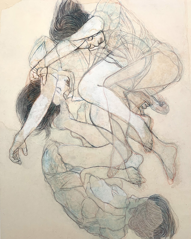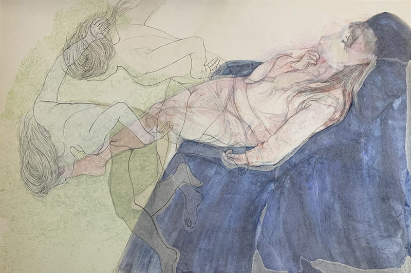 桑原理早展KUWAHARA Risa2025.7.22(tue) - 8.2(sat) ギャラリーなつか 日曜休廊「漣」 和紙壁紙、墨、念紙、薄美濃紙 91×72.7cm 2024 「眠りの馳せる」 和紙壁紙、墨、岩絵具、念紙、典具帖紙 97×145.5cm 2025 ≪姿は彼方から≫ 描いた後に時間を置いて絵を見ると、画面の中の存在が自分から遠く離れているような感覚になる。 数日前に会った人と撮った写真を見返した時も似た事を感じることがあるが、少し違う。 描く事で無意識を剥き出しにしたい。 画面の修正の跡は事実とはまた別のリアリティを見せていく。 略歴はこちら開催記録
