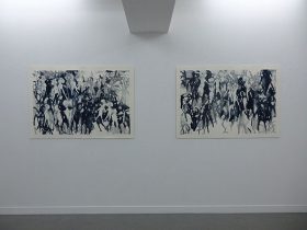 “見る”とはどういうことだろうか。最近、描く中で“見る”ということについて考える。いったい自分は“もの”の何を見て存在を感じ、捉えているのだろうか。画面を通して見つめれば、“もの”も“空間”も“自分”も同じ立ち位置から眺められる。3つの境界線に“見る”ことの何かが潜んでいる気がする。