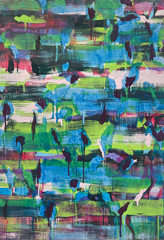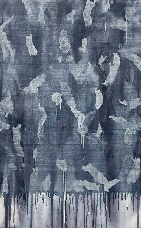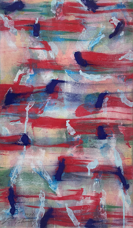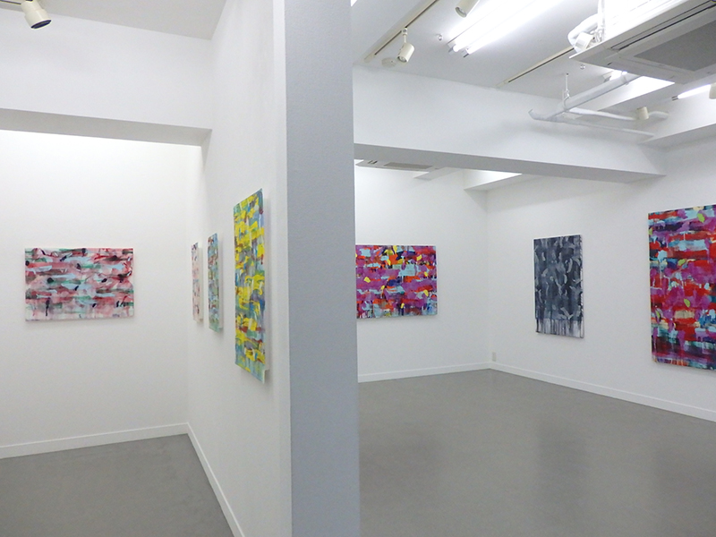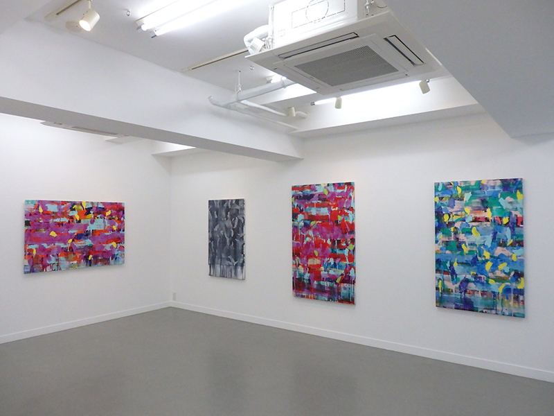 層を絵具の組み立ての基本に、異なった絵具の物質感の衝突から絵画空間が生まれる。